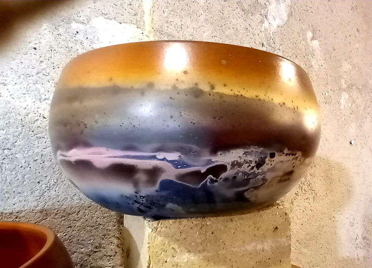 Cette technique un peu longue et délicate m’apporte l’immense satisfaction de produire des pièces faites uniquement de terres, d’eau de source et de feu (cuisson). Une poterie entièrement naturelle et dont les couleurs souvent chaudes (suivant l’atmosphère de cuisson) se distinguent par une profondeur et une luminosité incomparables.